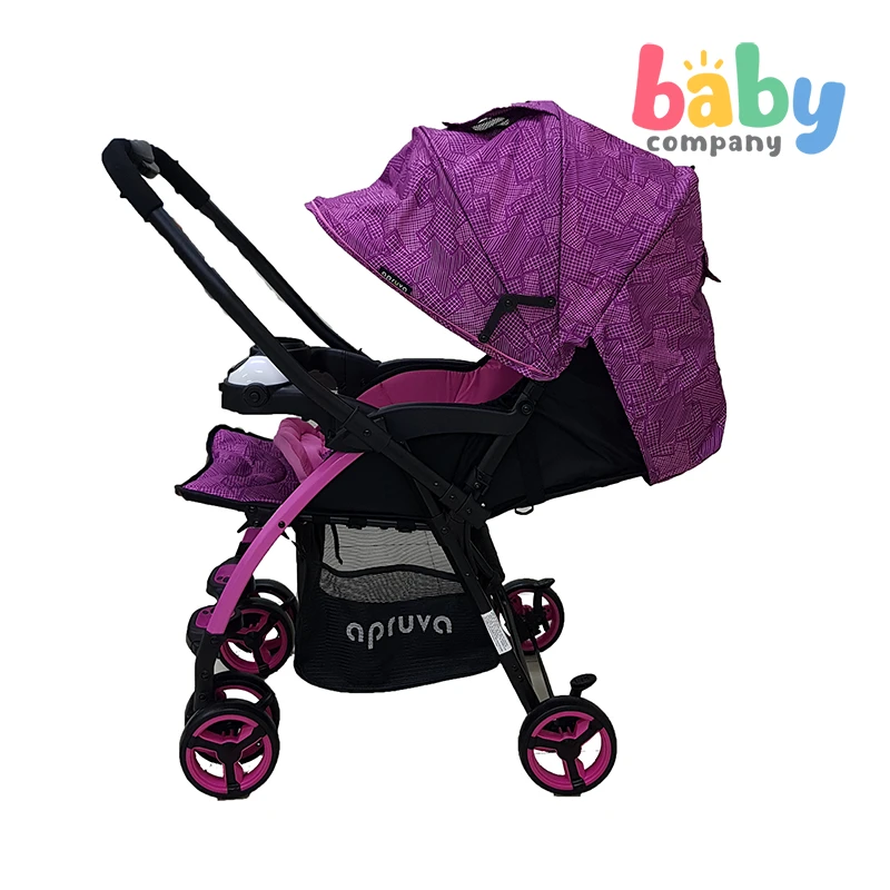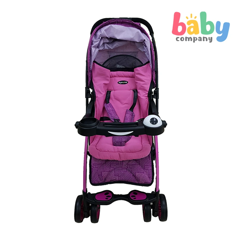 The Apruva āALLERā Reversible Stroller is a compact and one-hand fold stroller that brings travel comfort to babies. The stroller effortlessly switches between rear-facing and front-facing modes and features a reversible handle, a multi position reclining seat for comfortability of baby, a canopy with for sun protection, five-point safety harness for babyās safety, and a tray with cup holder convertible to toys.Ā