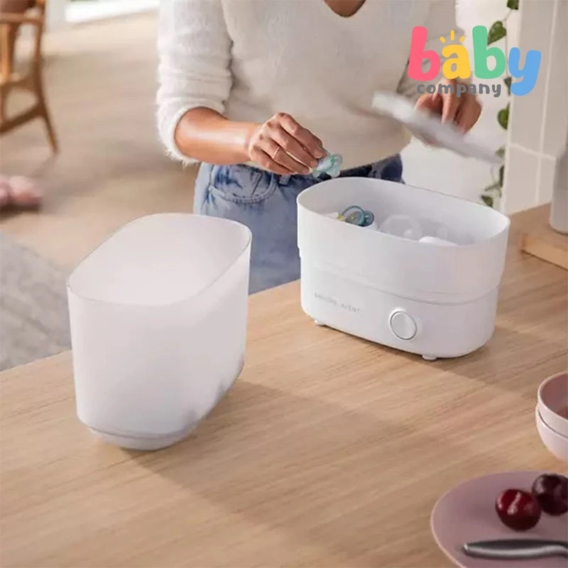 Our steriliser is slender and yet still holds up to six Philips Avent baby bottles. It also fits all the other essentials, from teats and soothers to a manual breast pump.