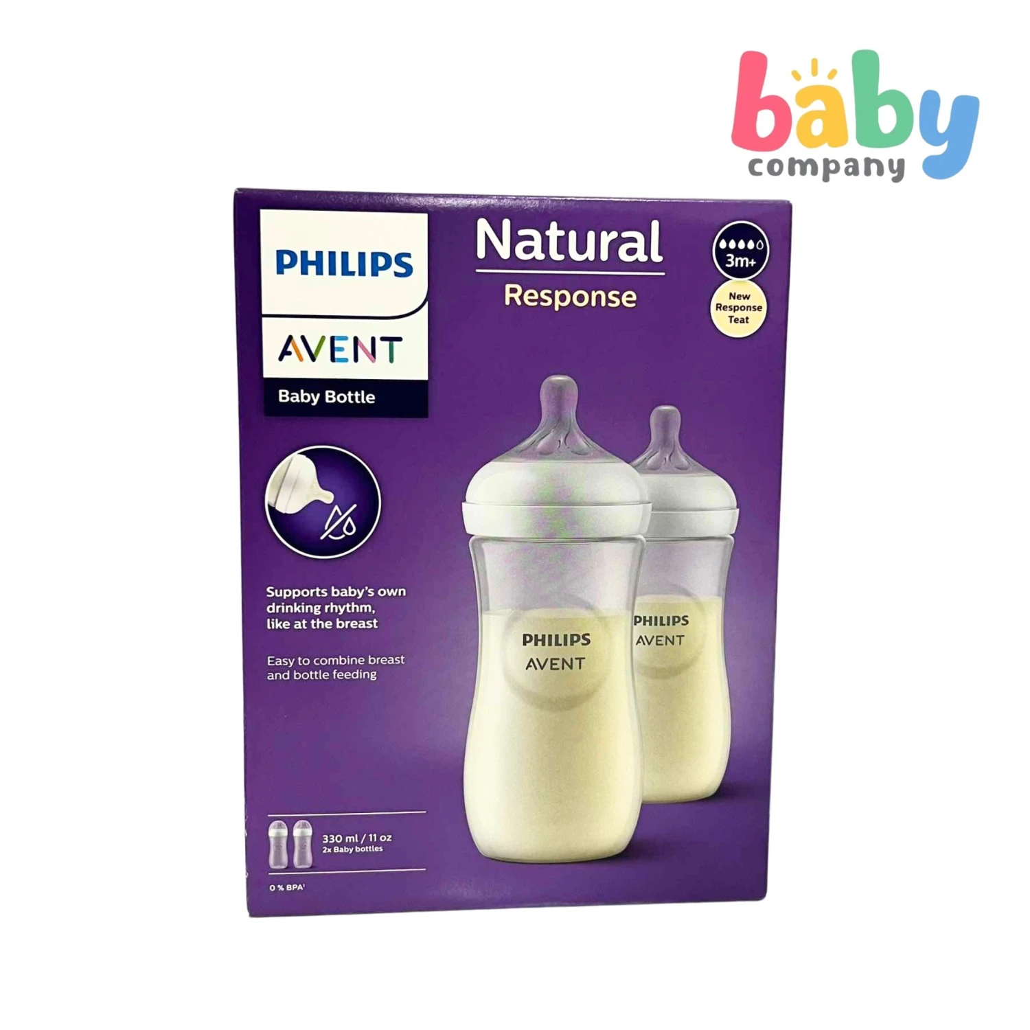 2 x Philips Avent Natural Response Baby Bottle 3m+ – 11oz/330ml