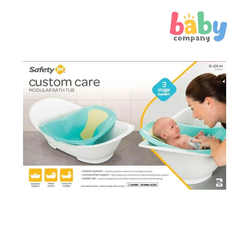 The custom-care modular bath center is a sleekly designed tub that offers the flexibility to adapt and grow with a young family through 3 stages, from newborn to baby to toddler.