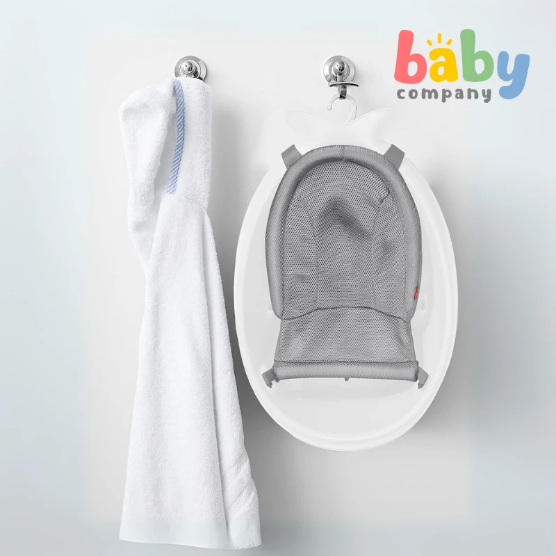 Our versatile tub grows with baby through three stages and is the only baby bath tub you’ll ever need. The sling locks into two ergonomic positions: higher for full-body support and lower for seated support. Dual layered mesh and comfort-edge construction securely cradles baby from head-to-toe. The slings adjusts to a cushioned seat that comfortably supports babies learning to sit. Remove the sling when baby has mastered sitting and easily bathe baby in the spacious tub—no uncomfortable plastic bumps.