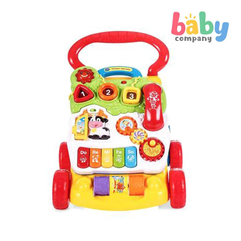 The VTech 2-in-1 walker supports a baby’s first steps. Introduces numbers, shapes, animals, and colors through fun activities and music.