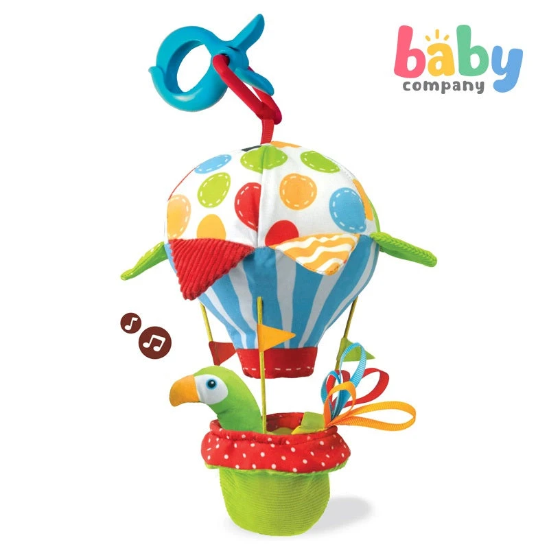 The Tap N Play Balloon is designed and constructed from different fabrics and textures in order to stimulate tactile development. Attach the hot air balloon to the stroller, to the baby carrier or to the gym to encourage baby to reach out and explore. Tap the hot air balloon for a musical feedback teaching cause & effect processes. Includes multiple textures and rattle rings.